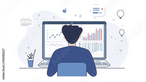 Wall mural a product manager analyzing data on a laptop with charts and graphs displayed on the screen, light s