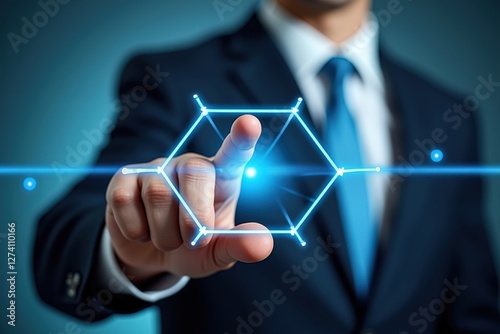 Wall mural : A professional businessman using advanced technology to interact with a virtual interface representi