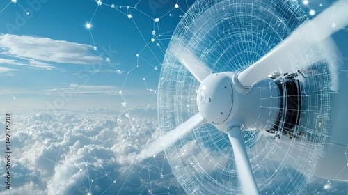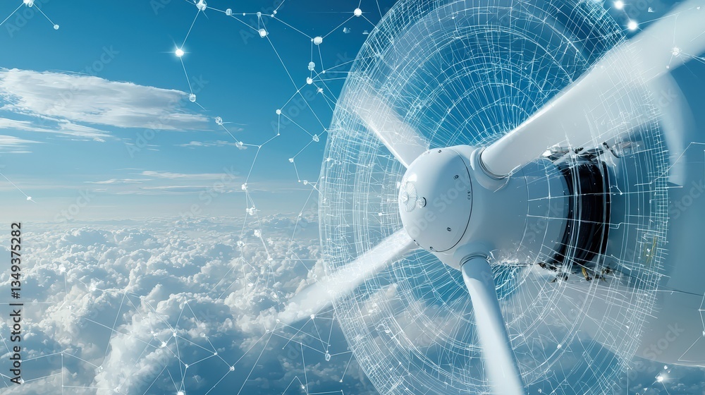 The watermark will not be included on Wall mural.: A propeller is shown in the sky with a network of lines surrounding it