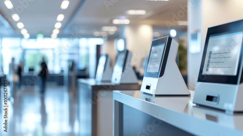 Wall mural : A public service office with automated systems to reduce human interaction - use of technology to min