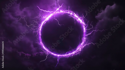 Wall mural a purple circle with lightning bolts surrounding it on dark background