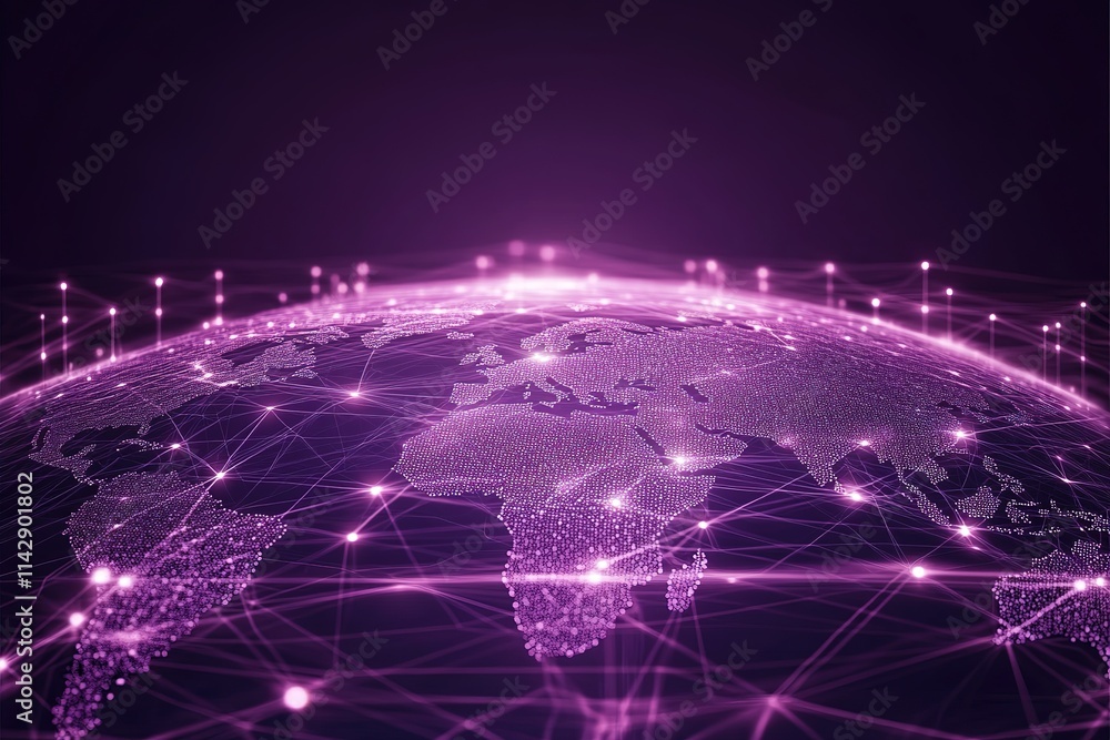 The watermark will not be included on Wall mural.: A purple globe with a network of lines connecting it
