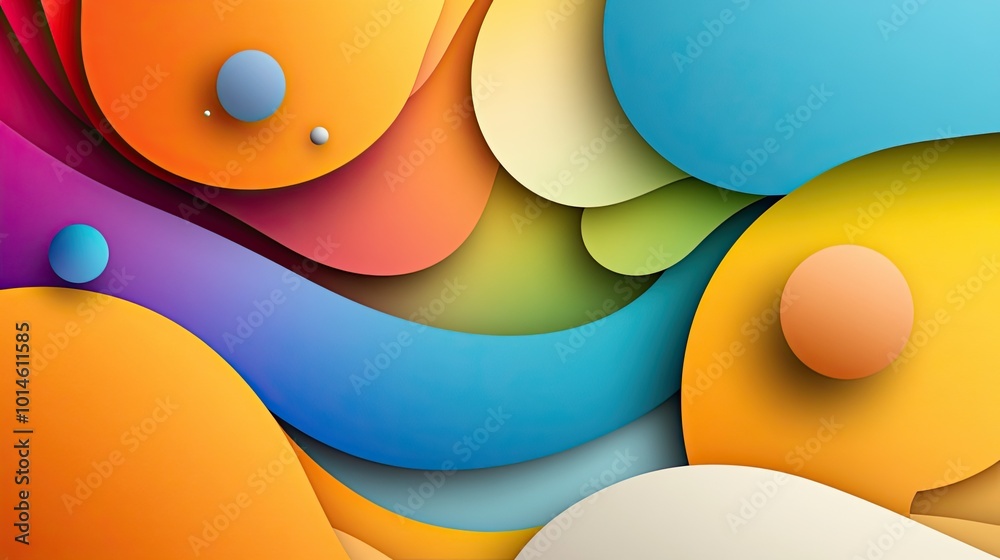 The watermark will not be included on Wall mural.: A rainbow abstract background with overlapping circular shapes and bold colors, offering a playful a