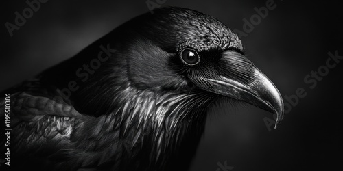 Wall mural a raven with glossy black feathers is captured in a close-up view, revealing its sharp beak and inte - Wall murals Wall mural a raven with glossy black feathers is captured in a close-up view, revealing its sharp beak and inte - Wall murals