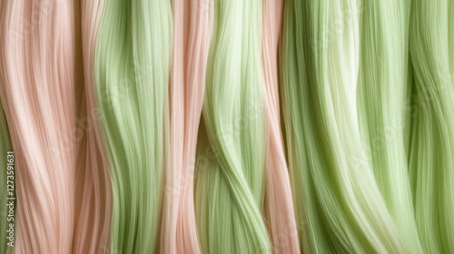 The watermark will not be included on Wall mural.: A realistic wool texture background featuring light green and soft pink fibers arranged in a striped
