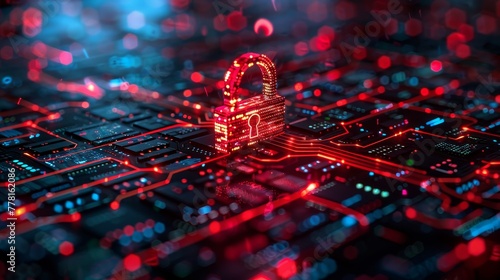 The watermark will not be included on Wall mural.: A red and blue computer chip with a lock on it