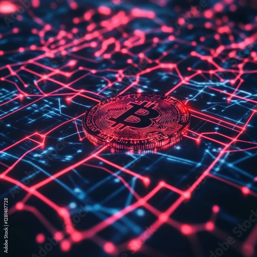 Wall mural a red and blue computer screen with a coin on it - Wall murals Wall mural a red and blue computer screen with a coin on it - Wall murals