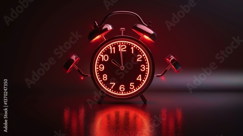 Wall mural a red glowing alarm clock is sitting on a dark surface. the clock is surrounded by a red glow.
