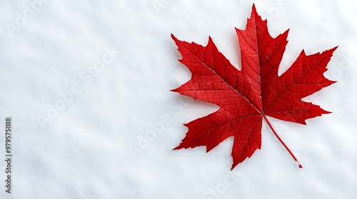 Wall mural a red maple leaf sits atop a pristine white snow background, capturing the essence of winter's beaut - Wall murals Wall mural a red maple leaf sits atop a pristine white snow background, capturing the essence of winter's beaut - Wall murals