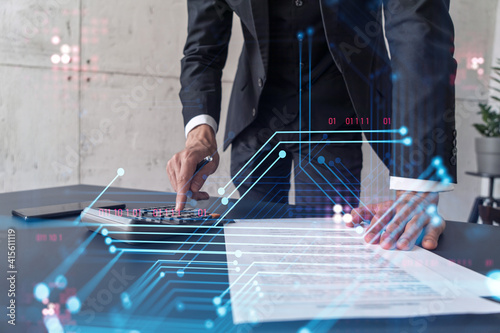 The watermark will not be included on Wall mural.: A research and development specialist computing the data to create a new approach to develop high te