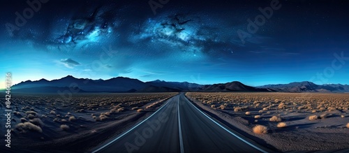 Wall mural : A road stretching out towards the milky way galaxy in a mesmerizing copy space image -