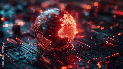 Wall mural a robotics hologram abstract technology background with a globe on a chinese flag, representing ai a - Wall murals Wall mural a robotics hologram abstract technology background with a globe on a chinese flag, representing ai a - Wall murals