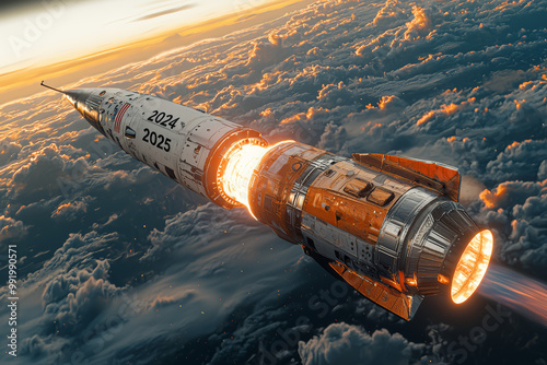 Wall mural a rocket launching into space with "2024" written on its side, transitioning into "2025" as it break - Wall murals Wall mural a rocket launching into space with "2024" written on its side, transitioning into "2025" as it break - Wall murals
