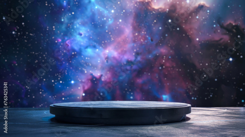 Wall mural a round, empty stage with a backdrop of a starry sky. the stage is set for a performance or a presen