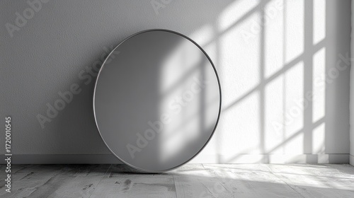 Wall mural A round mirror with a metallic frame reflecting a window with sunlight streaming in. - Wall murals Wall mural A round mirror with a metallic frame reflecting a window with sunlight streaming in. - Wall murals