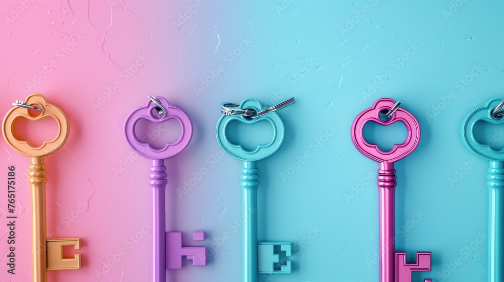 A row of keys on a colorful wall, suitable for various concepts and designsWall mural
