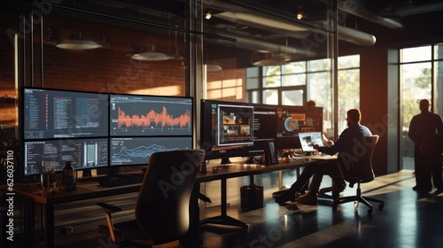 Wall mural a scene showcasing a team of software developers coding, collaborating, and testing applications in  - Wall murals Wall mural a scene showcasing a team of software developers coding, collaborating, and testing applications in - Wall murals