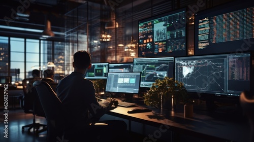 Wall mural a scene showcasing a team of software developers coding, collaborating, and testing applications in  - Wall murals Wall mural a scene showcasing a team of software developers coding, collaborating, and testing applications in - Wall murals
