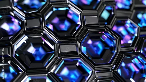Wall mural : A seamless 4k looping animation of futuristic hexagonal patterns creating a dynamic honeycomb surfac