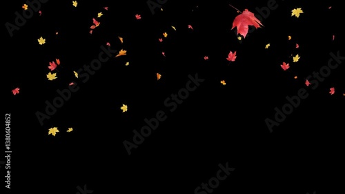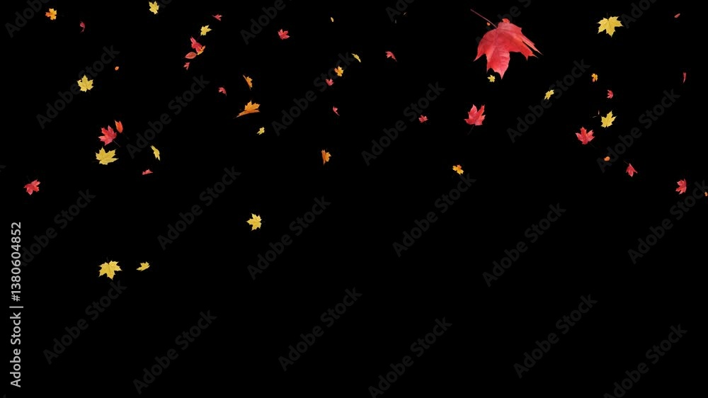 Wall mural : A seamless loop of maple leaves gracefully falling on transparent alpha, ideal for background loops
