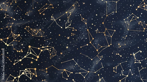 The watermark will not be included on Wall mural.: A seamless pattern of constellations and stars on a dark blue background -