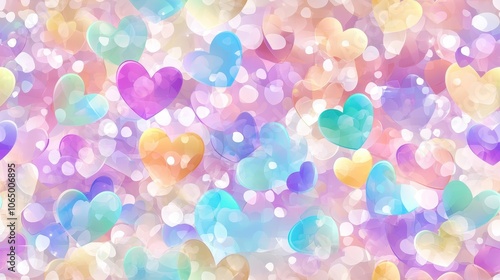 Wall mural a seamless pattern of pastel-colored hearts and bokeh, creating a dreamy, romantic background with a