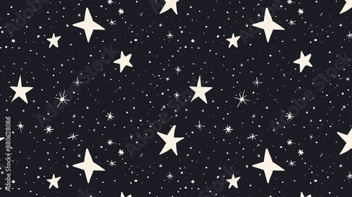 The watermark will not be included on Wall mural.: A seamless pattern of stars of different sizes on a dark background -