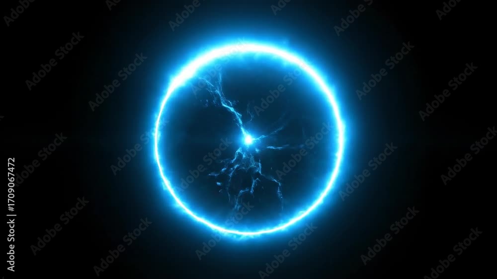 A seamlessly looping video depicts an electric cyan circular flare pulsating rhythmically, generatinWall mural