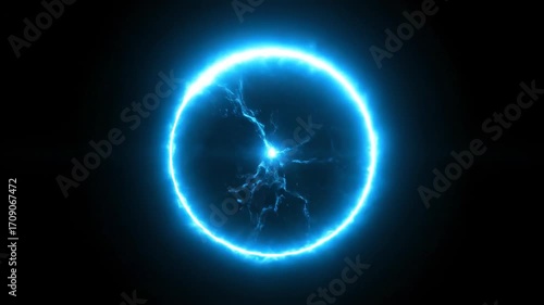 Wall mural a seamlessly looping video depicts an electric cyan circular flare pulsating rhythmically, generatin