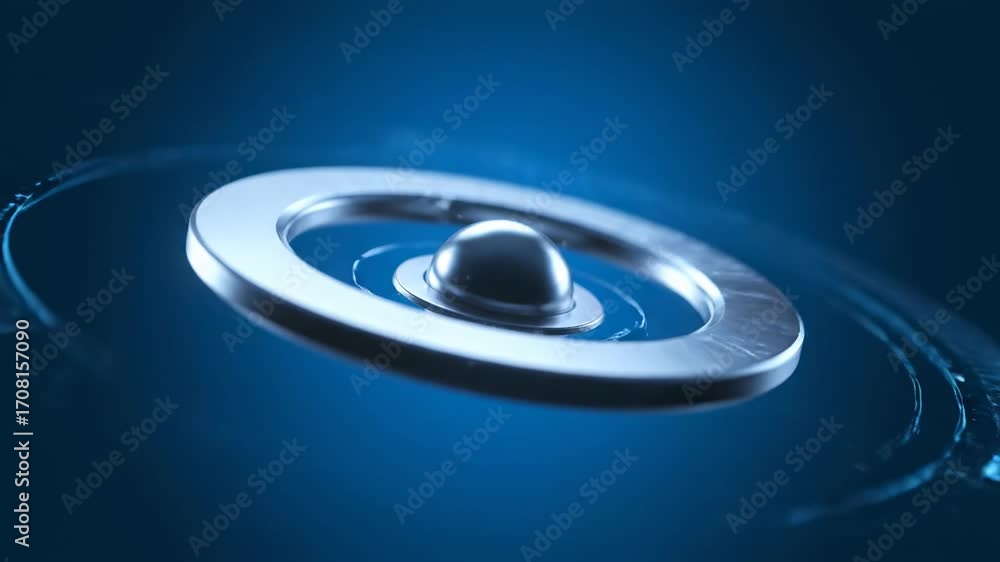 Wall mural : A seamlessly looping video features a sleek silver circular flare with metallic glints orbiting its
