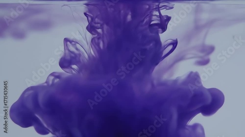 Wall mural : A seamlessly looping video featuring delicate purple blue ink drops, diffusing and blending in slow