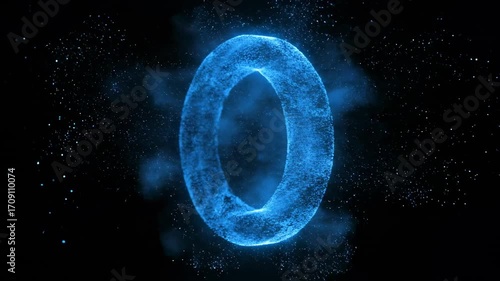 The watermark will not be included on Wall mural.: A seamlessly looping video of a particle energy ring continuously forming and dissolving into a clou