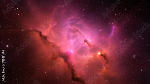 Wall mural : A seamlessly looping video of a vibrant pink and orange nebula slowly expanding and swirling in deep