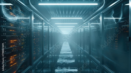 Wall mural : A secure data center with robust encryption measures safeguarding login credentials, surrounded by d