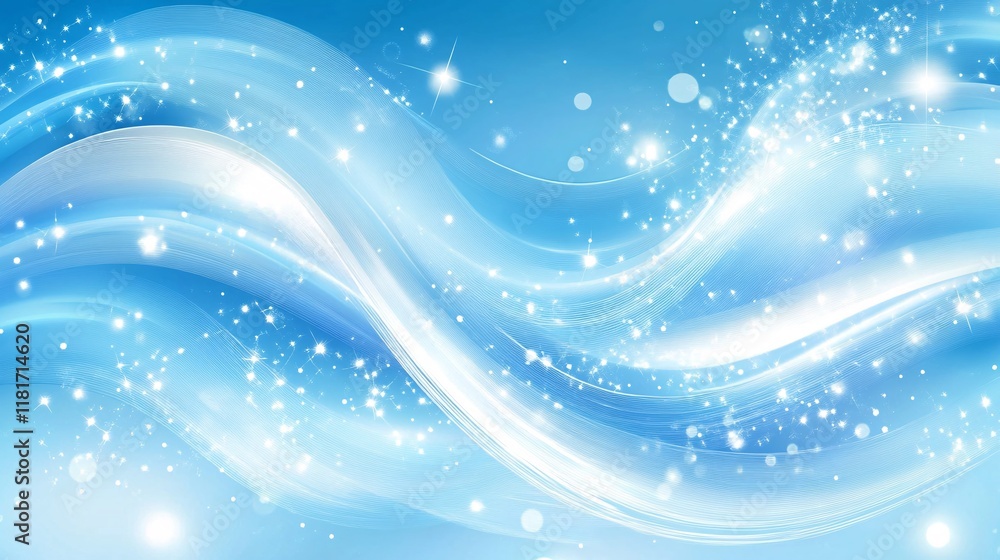 Wall mural : A serene abstract design featuring soft blue waves and sparkling light elements, creating a tranquil