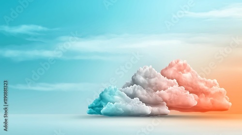 The watermark will not be included on Wall mural.: A serene sky view featuring colorful clouds against a gradient background of blue and orange hues -