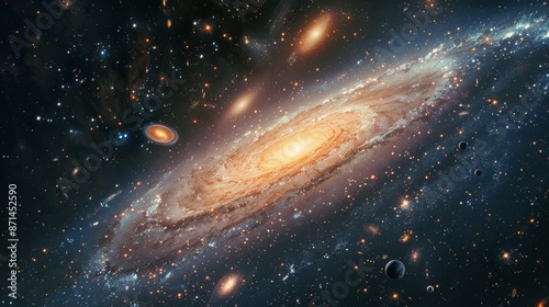 Wall mural : A serene view of a distant galaxy, with various celestial bodies and cosmic phenomena generative ai