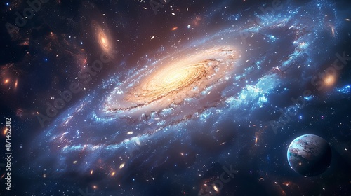 A serene view of a distant galaxy, with various celestial bodies and cosmic phenomena generative aiWall mural