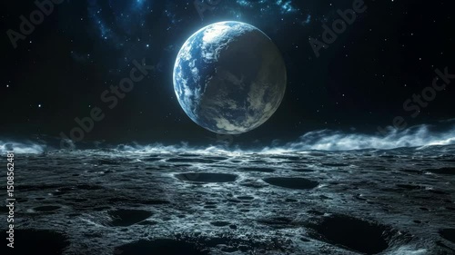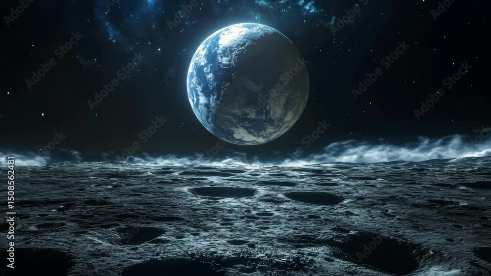 The watermark will not be included on Wall mural.: A serene view of earth from space with the moon in close proximity -