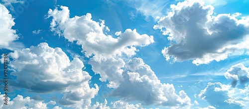 The watermark will not be included on Wall mural.: A serene view of the expansive blue sky with fluffy clouds ideal as a backdrop for a copy space imag