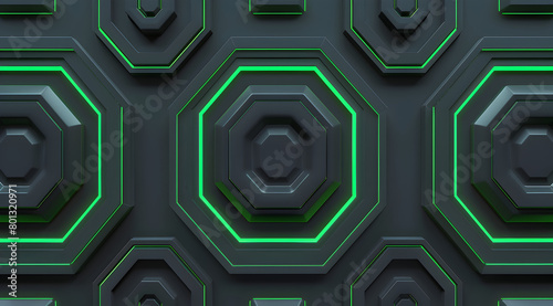 Wall mural : A series of green and black geometric shapes are arranged in a pattern - the shapes are illuminated a