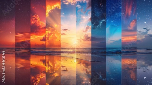 Wall mural a series of images of the ocean at sunset, each with a different color scheme - Wall murals Wall mural a series of images of the ocean at sunset, each with a different color scheme - Wall murals