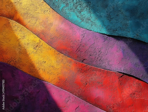 The watermark will not be included on Wall mural.: A series of overlapping shadows in abstract forms, with vibrant hues blending into one another acros