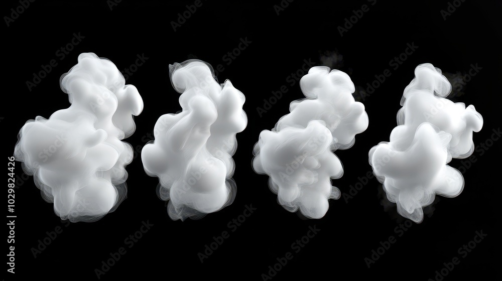 Wall mural a series of white clouds on a black background. the clouds are all different sizes and shapes, creat