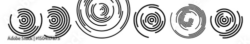 Wall mural a set of black and white circular elements made of lines with a rotating effect. abstract swirl desi
