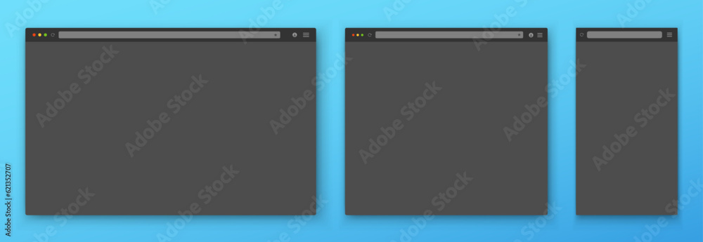 Wall mural a set of gray browser windows of different shapes on a blue background. website layout with search b