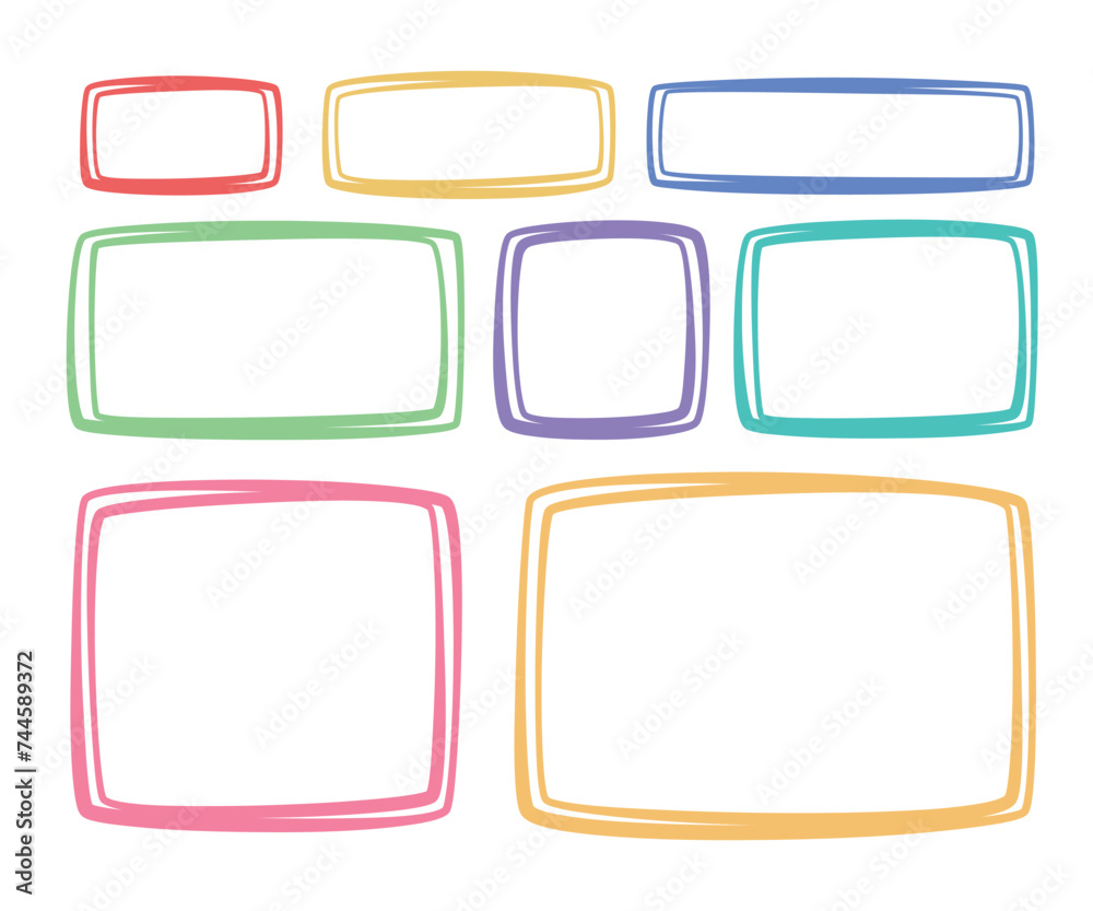 The watermark will not be included on Wall mural.: A set of hand drawn doodle blank text frames - colored text box - empty speech bubbles on transparent