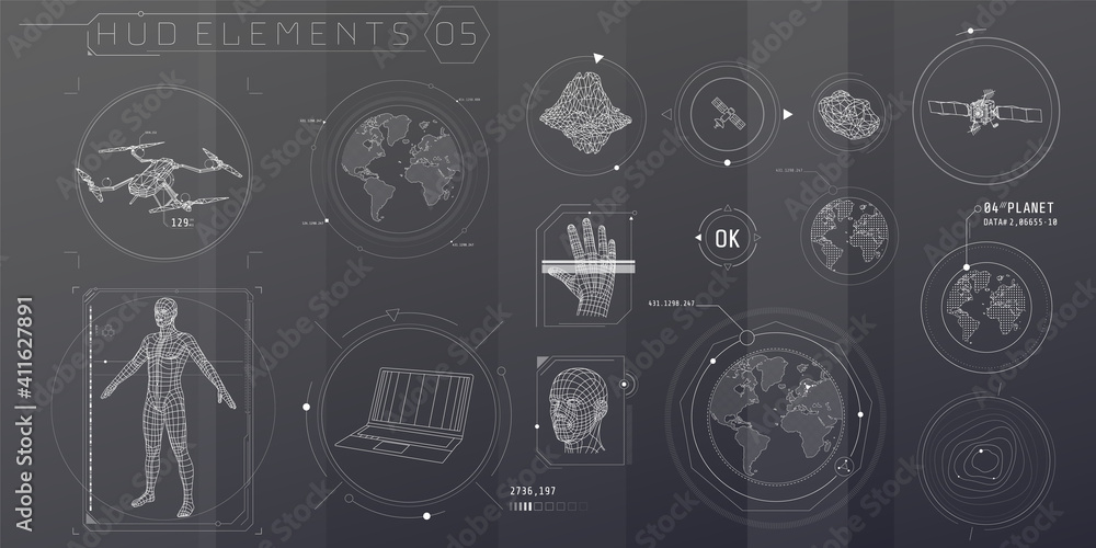 The watermark will not be included on Wall mural.: A set of hud 3d-scanning elements for a futuristic interface -