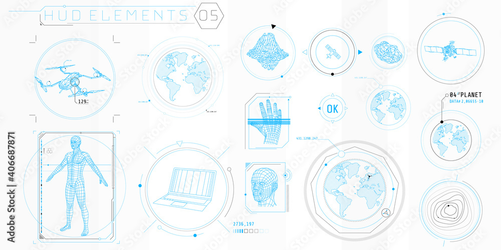 The watermark will not be included on Wall mural.: A set of hud 3d-scanning elements for a futuristic interface -