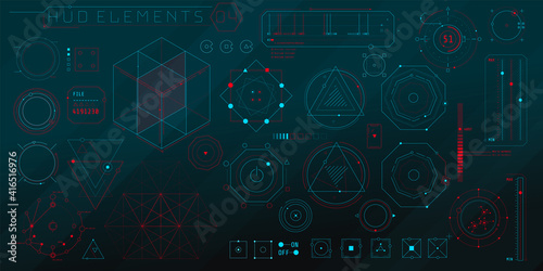 The watermark will not be included on Wall mural.: A set of hud geometric elements for a futuristic interface -